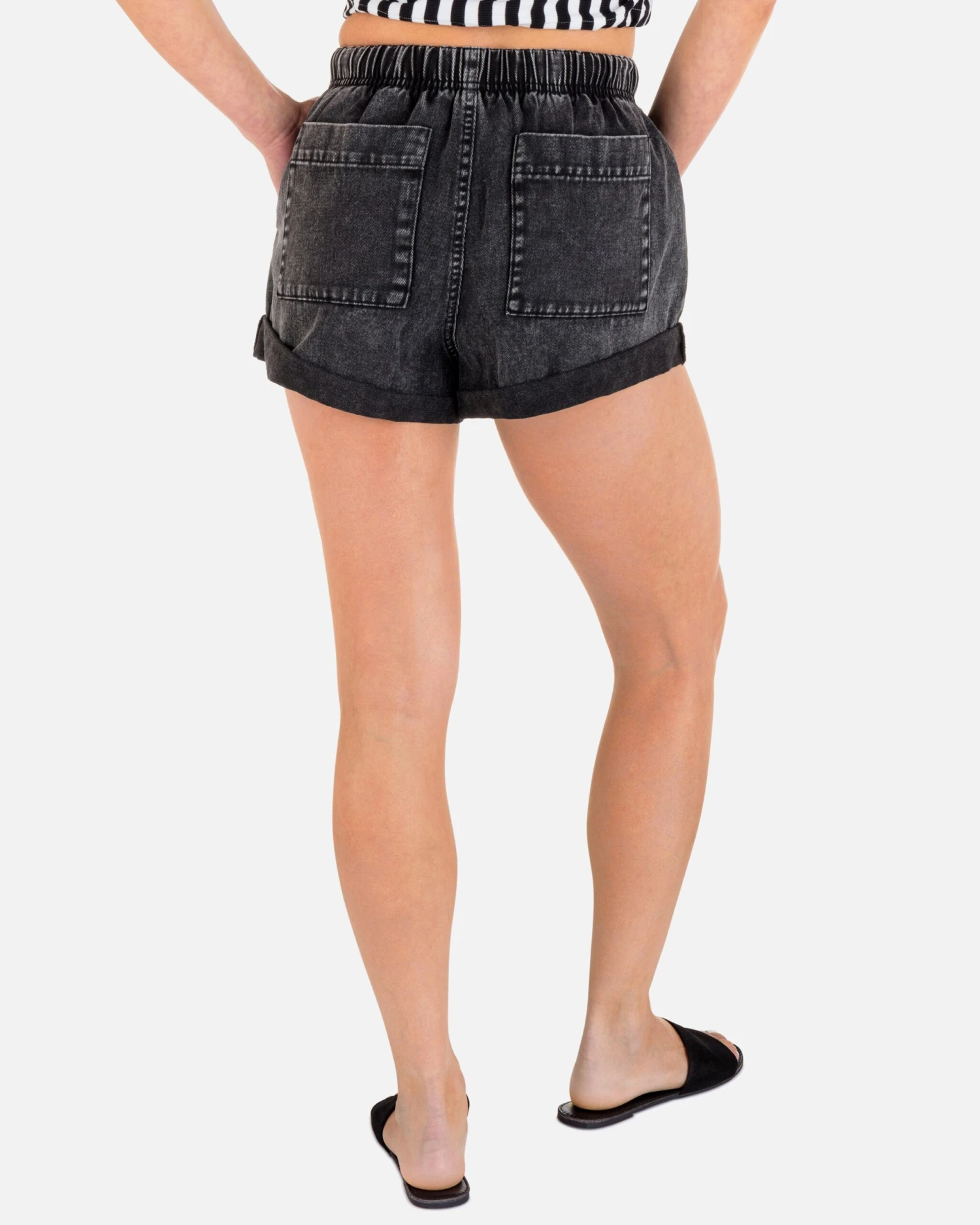 Keep it cool and casual in the ARIA CUT OFF SHORT, an elastic waist short with rolled and tacked hem and a trendy wash for extra vibes. Rock them with your favorite graphic tee for an easy, everyday look.