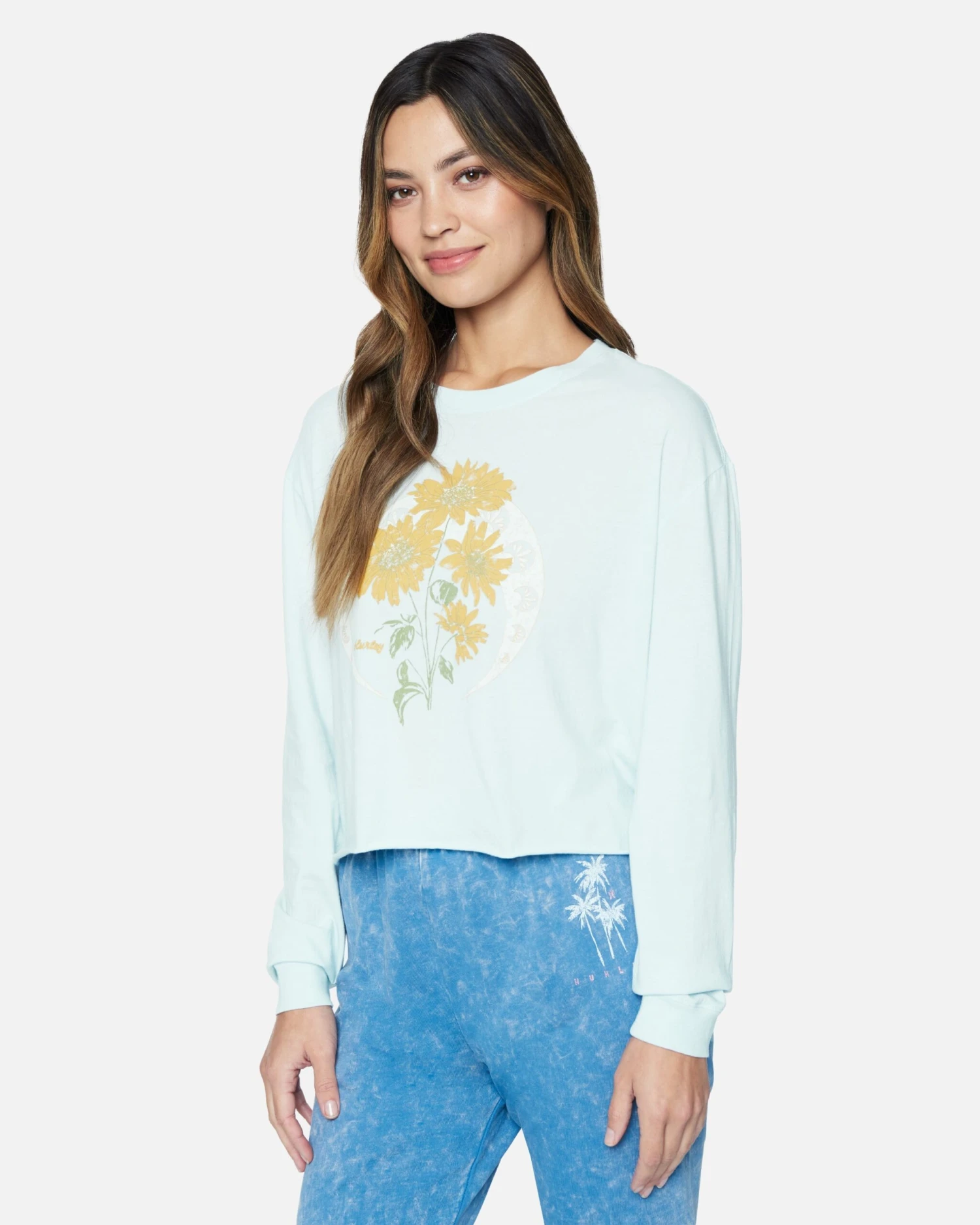 The Paige Washed Cropped Boyfriend Long Sleeve Tee is big on sweetness and comfort, with an exclusive floral design and a soft cotton jersey that’s been treated with an enzyme wash for extra softness.
