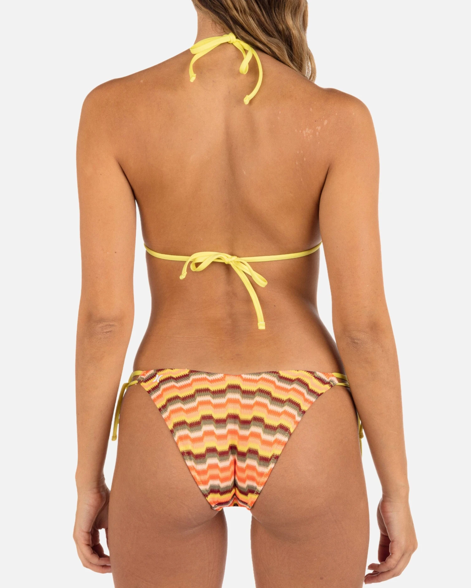 - Bikini bottom with V-front and back waist with tie sides